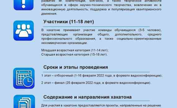 Хакатон проводится с 1 по 25 февраля 2022 года в целях развития творческой активности обучающихся в сфере научно-технического творчества, 4К-компетенций, вовлечения их в инновационную деятельность, […]
