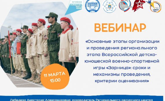 11 марта в 15:00 состоится вебинар «Основные этапы организации и проведения регионального этапа Всероссийской детско-юношеской военно-спортивной игры «Зарница»: сроки и механизмы проведения, критерии оценивания». Вебинар […]