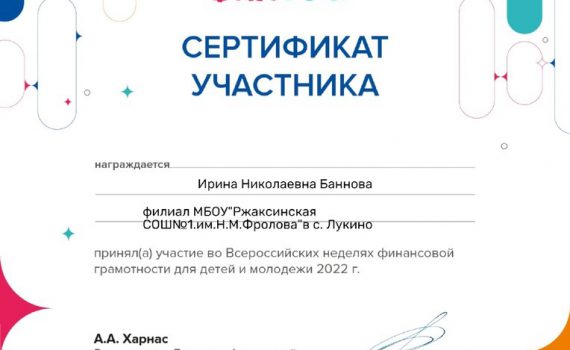 Филиал МБОУ «Ржаксинская СОШ №1 им. Н. М. Фролова» в с. Лукино. В России прошла «Неделя финансовой грамотности». В рамках акции ребята 8 класса нашей […]