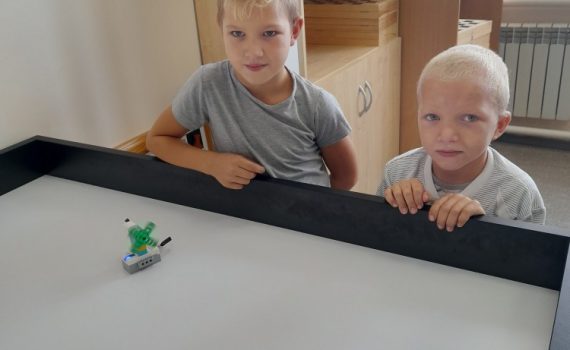 На первых занятиях по робототехнике ребята демонстрируют свои первые проекты: вентиляторы, вездеходы, вращающиеся спутники, роботов-шпионов.