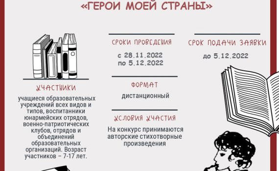 В период с 28 ноября по 5 декабря 2022 года в рамках регионального событийного марафона «Тамбовщина патриотическая» состоится конкурс юных поэтов «Герои моей страны». Конкурс […]