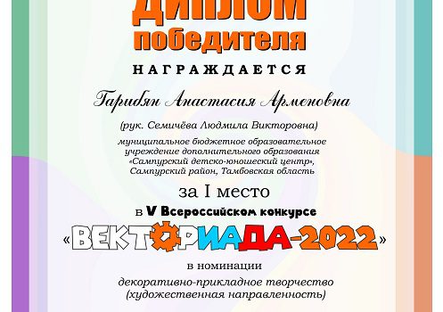 Обучающиеся МБОУДО «Сампурский ДЮЦ» стали победителями V Всероссийского конкурса «ВЕКТОРИАДА -2022»(педагог Семичёва Людмила Викторовна). В номинации «Декоративно-прикладное творчество»: 1место — Дорошина Валентина, Семичёва Екатерина, Семёнов […]