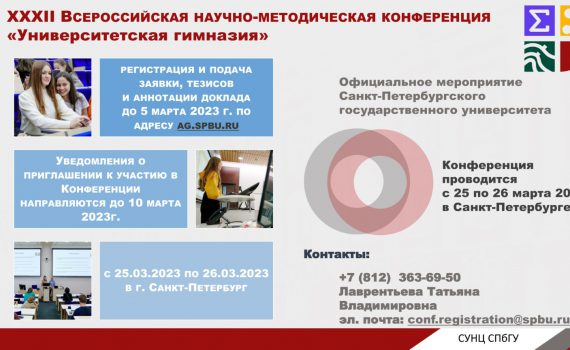 25-26 марта 2023 года в Санкт-Петербургском государственном университете состоится очная XXXII Всероссийская научно-методическая конференция «Университетская гимназия». К участию в конференции приглашаются обучающиеся 8-11 классов, а […]
