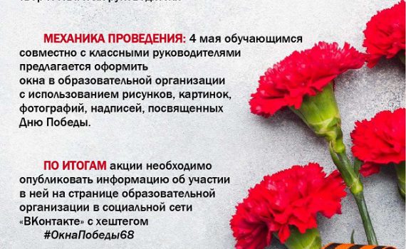 Сегодня, 28 апреля текущего года, дан старт мероприятиям, посвящённым Победе в Великой Отечественной войне: в парке Победы города Тамбова состоялся флешмоб, посвященный Годовщине Победы. Участники […]