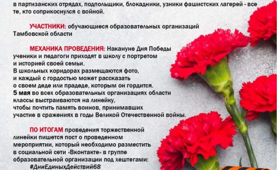 День Победы — праздник важный, Светлый, радостный, святой. В этот день Отчизна наша Всем вернула мир земной. Победа 1945 года навсегда останется для нас […]