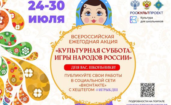 Ежегодная акция «Культурная суббота. Игры народов России детям» стартует 24 июля в рамках межведомственного культурно-образовательного проекта Минкультуры России и Минпросвещения России «Культура для школьников». Акция […]