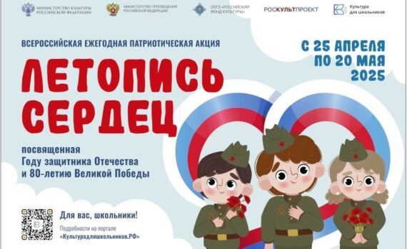 С 25 апреля по 20 мая 2025 года в рамках межведомственного культурно-образовательного проекта «Культура для школьников» пройдет Всероссийская ежегодная патриотическая акция «Летопись сердец», посвященная Году […]